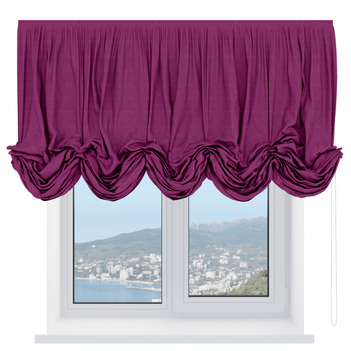 Австрийская штора вельвет фиолетовый, карниз верёвочный