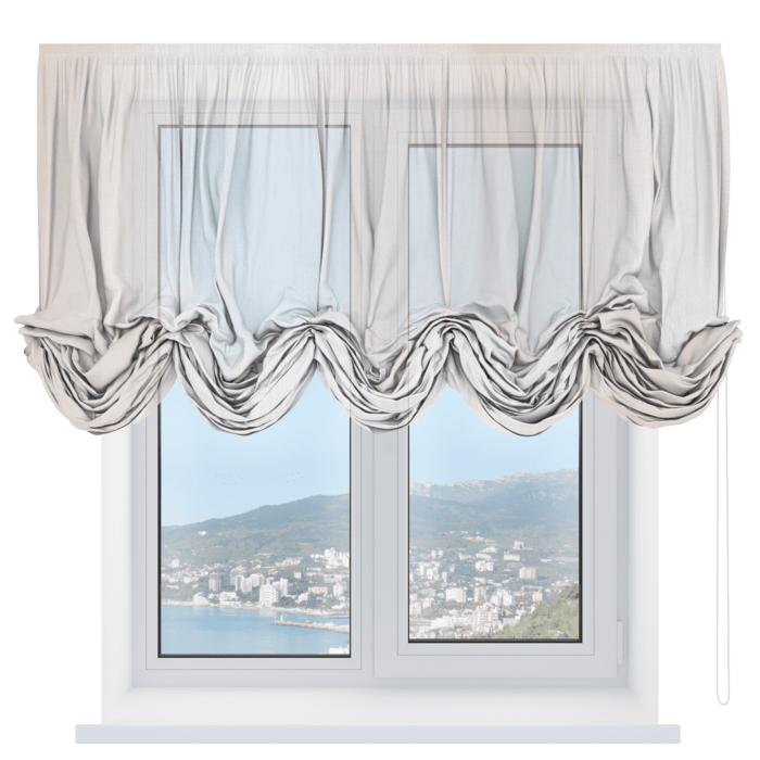 Австрийская штора лён белоснежный, карниз верёвочный